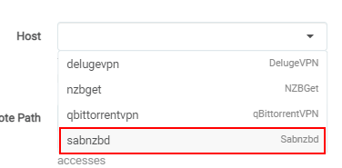 This could be a hostname, container name (use .internal domain like sabnzbd.internal when using hotio containers with VPN) or an IP Address